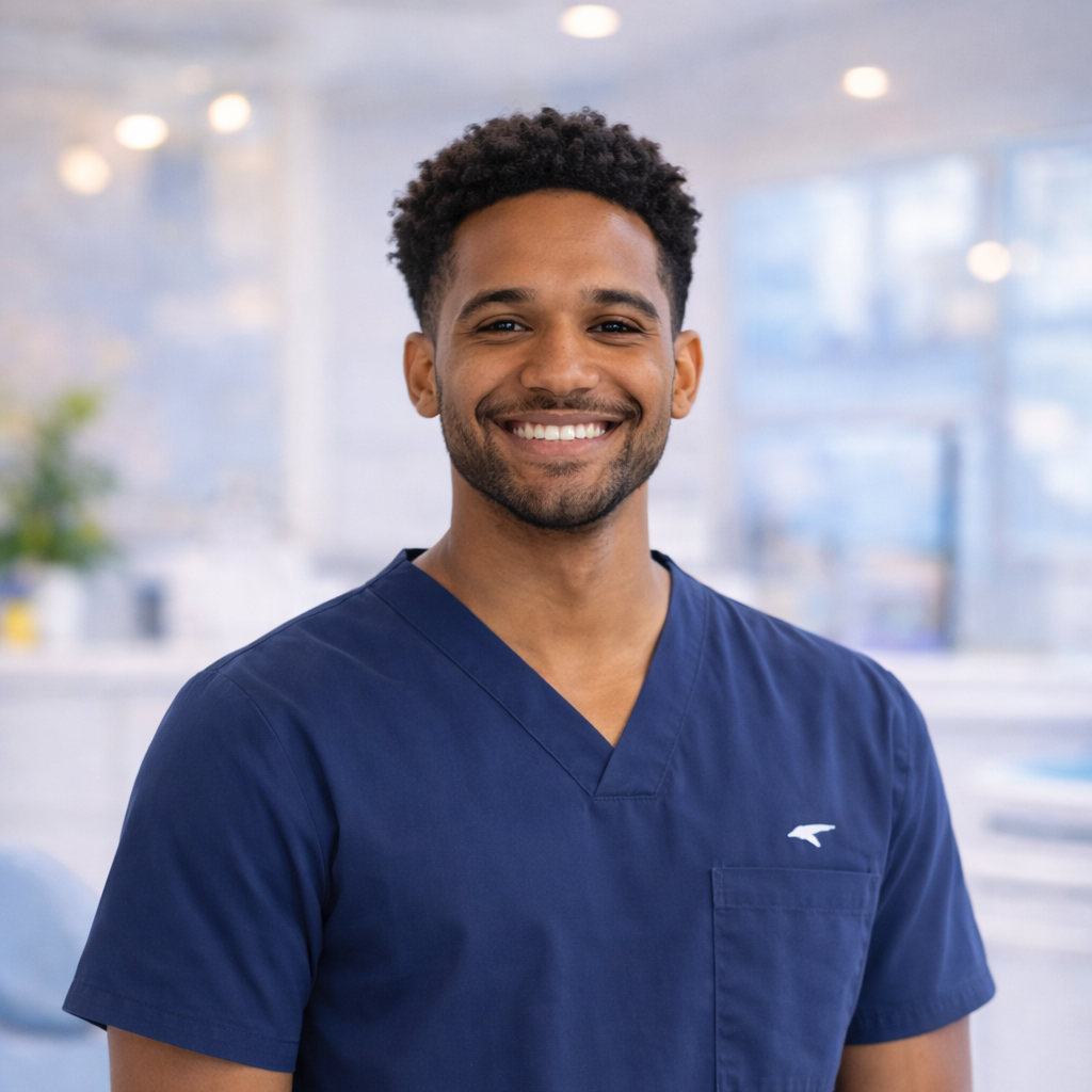 Justin is known for his high-fives, silly jokes, and making sure every patient feels like a superstar from takeoff to landing!